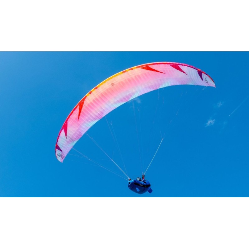 Il offre une vitesse max très élevée et une excellente stabilité accélérée, avec cette sensation de « glisse » satisfaisante et rassurante lorsqu'on pousse le barau. Elle est aussi super efficace en thermiques ! Elle enroule aussi bien à plat avec un rendement au top que sur la tranche pour se faire propulser au plaf dans les petits thermiques puissants.